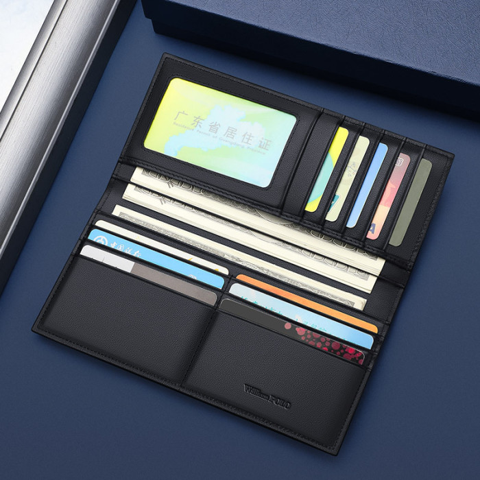 英皇保羅男士錢包長款錢包真皮錢包男頭層牛皮多卡位卡包錢包