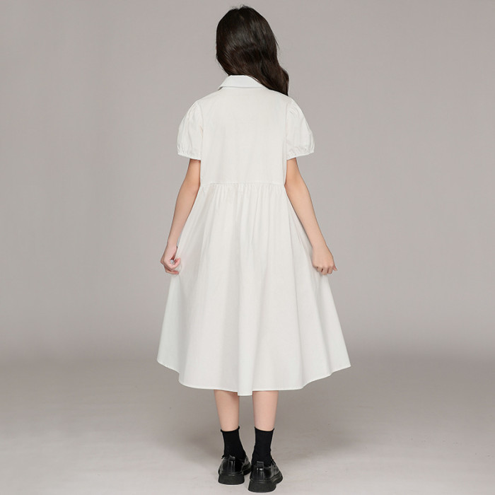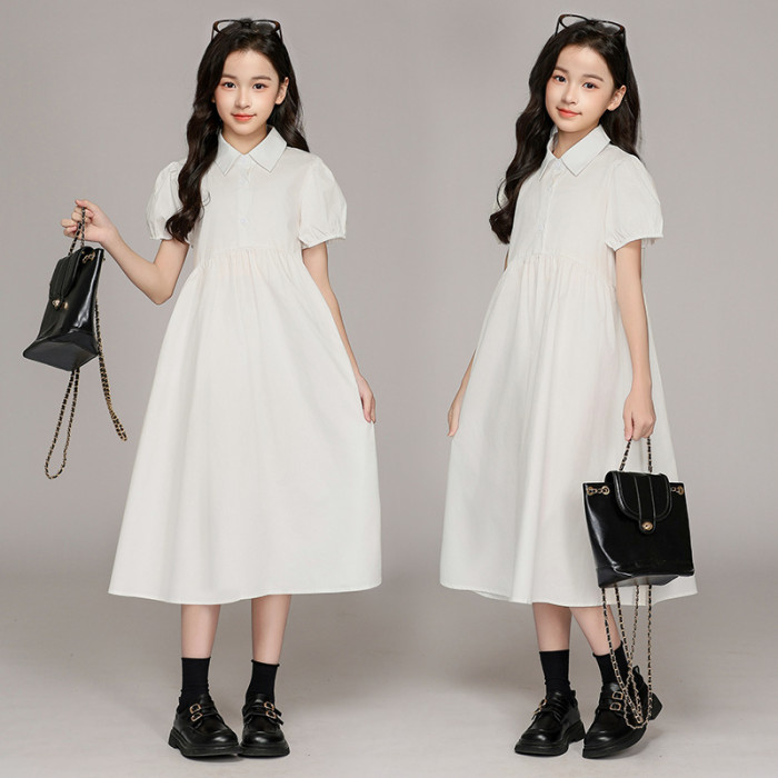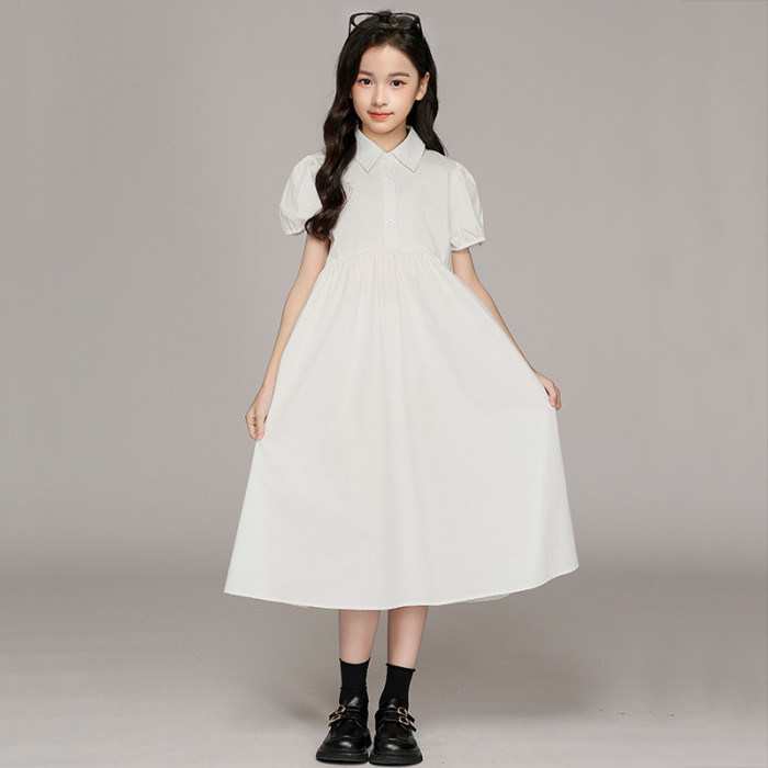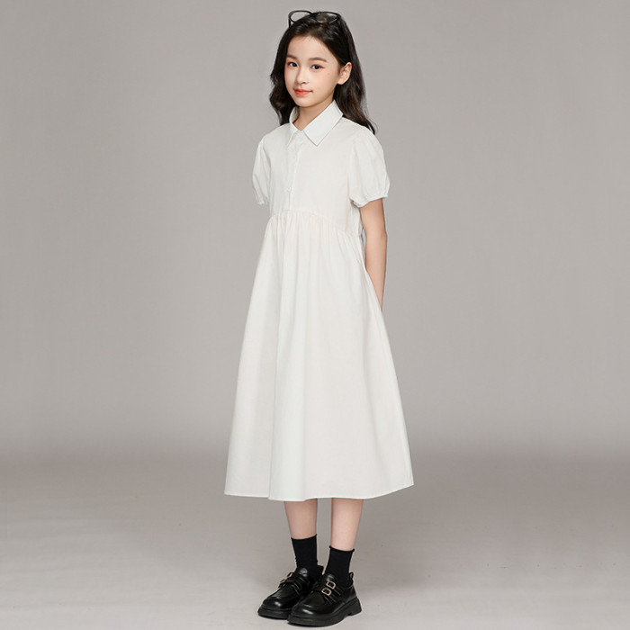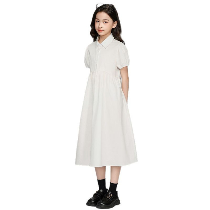 女童連衣裙2025春夏新款襯衫領連衣裙中大童短袖長袖中學生連衣裙
