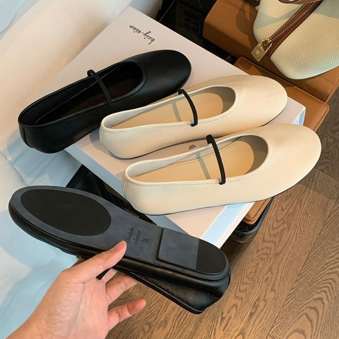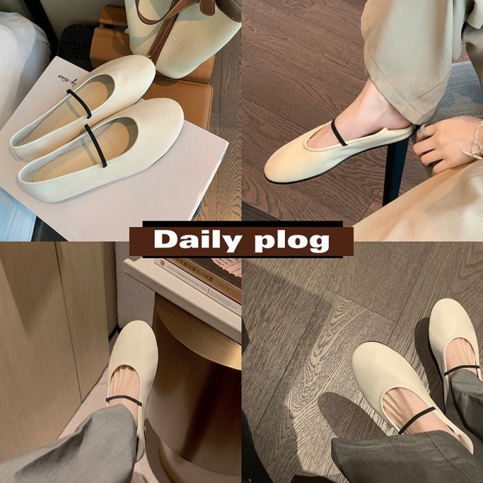 葡萄媽studiolee 恬靜午後~軟面圓頭淺口細一字帶平底瑪麗珍鞋