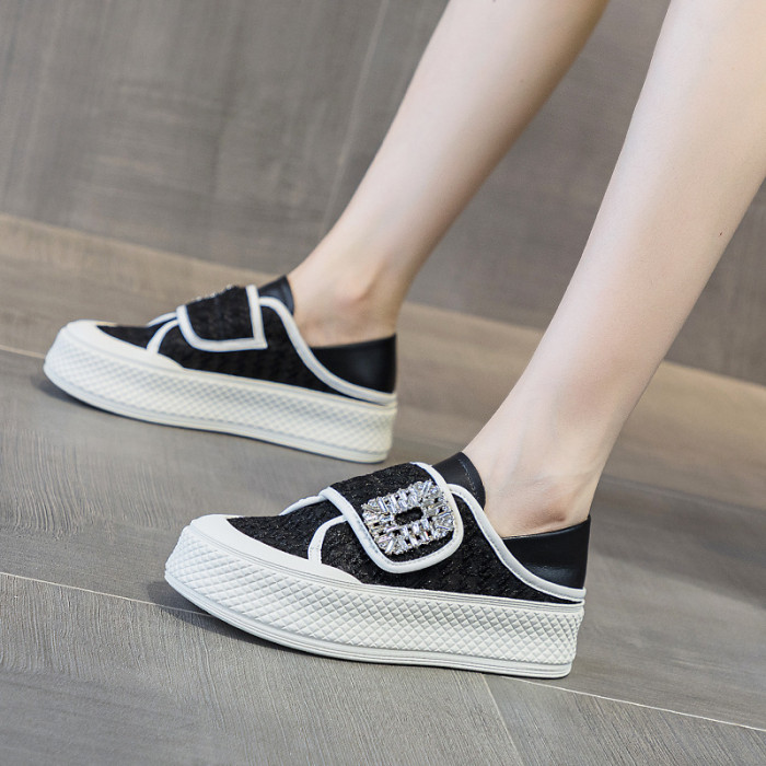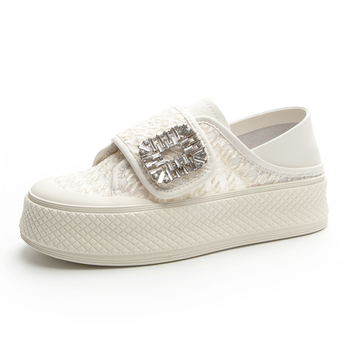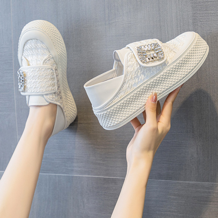 網紅爆款小白鞋女夏季2025年新款水鑽網紗透氣百搭運動休閒厚底鞋