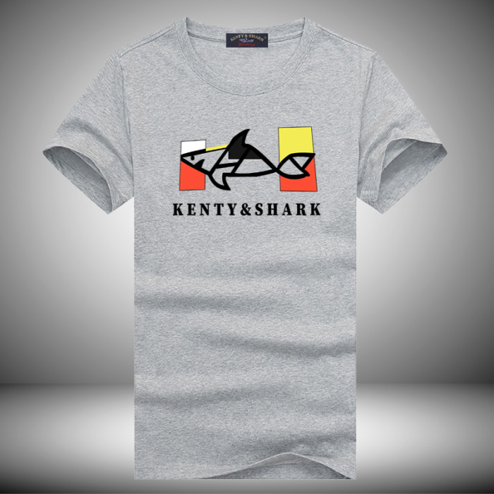 肯迪鯊魚純色印花短袖男t恤純棉簡約男打底衫百搭潮流男士上衣