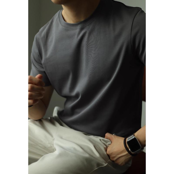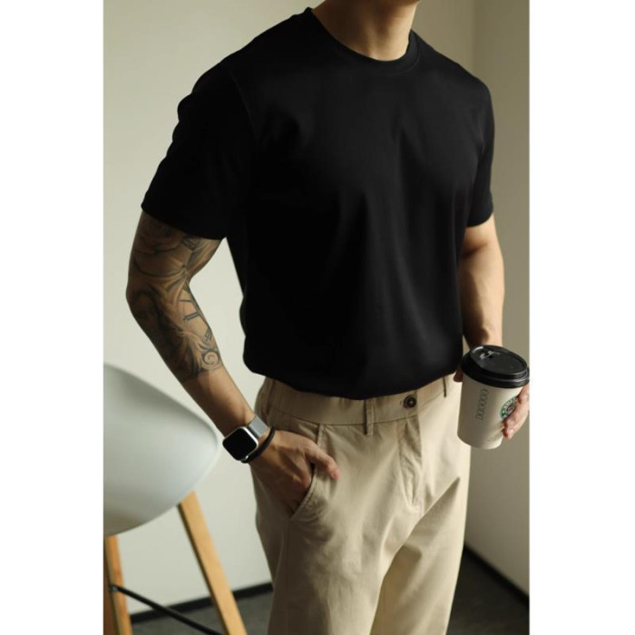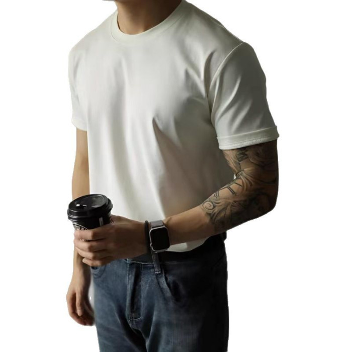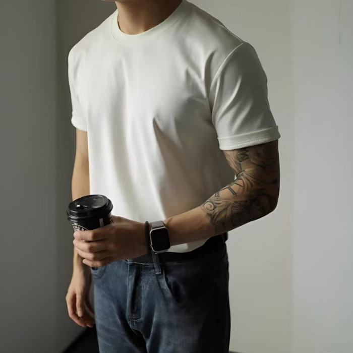 日系300g重磅短袖男t恤夏季打底衫男士純色簡約圓領商務衛衣男款