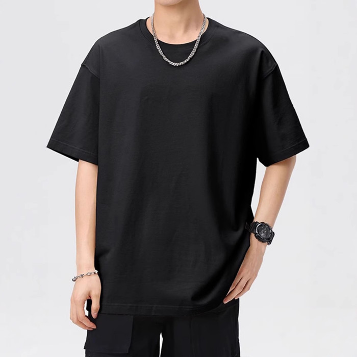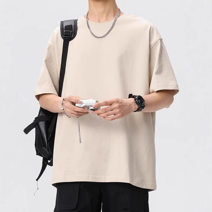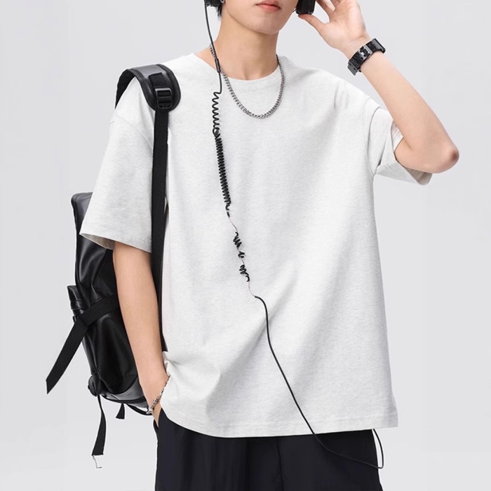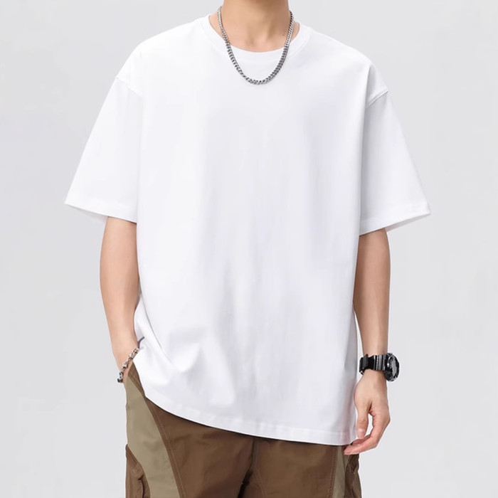 三本針雙紗純棉短袖男t恤美式重磅夏季白色短袖情侶潮牌寬松半袖