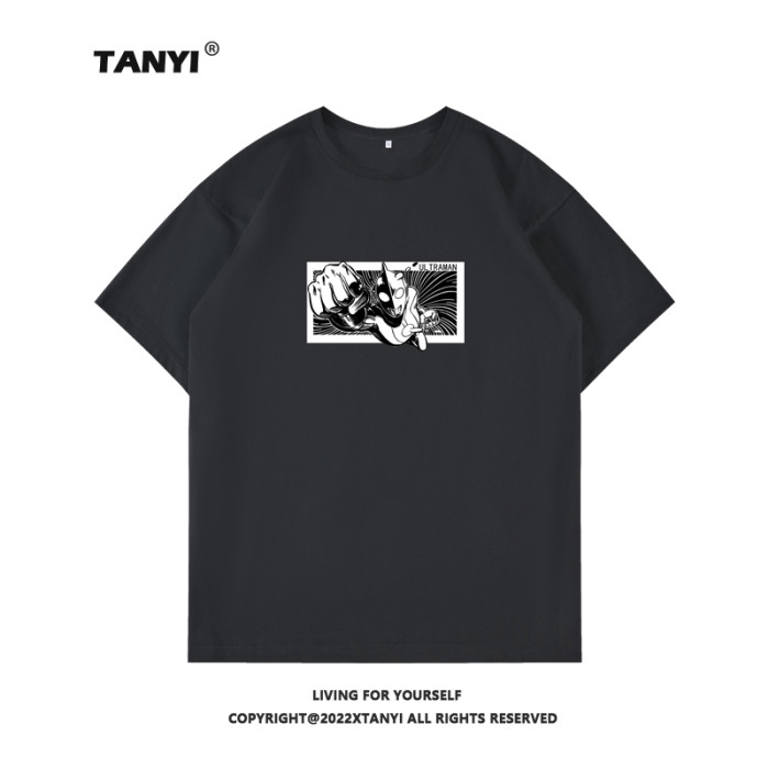 日系街頭短袖男t恤小衆設計奧特曼懷舊卡通印花純棉休閒半袖夏