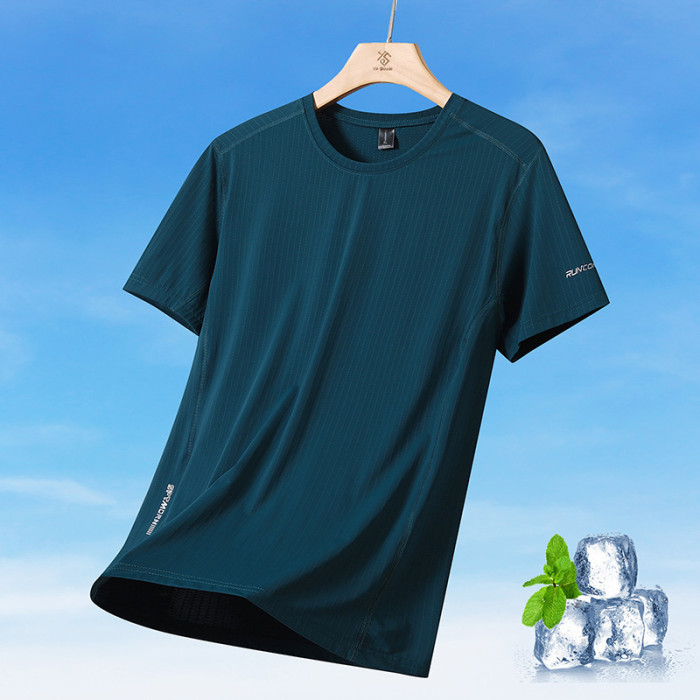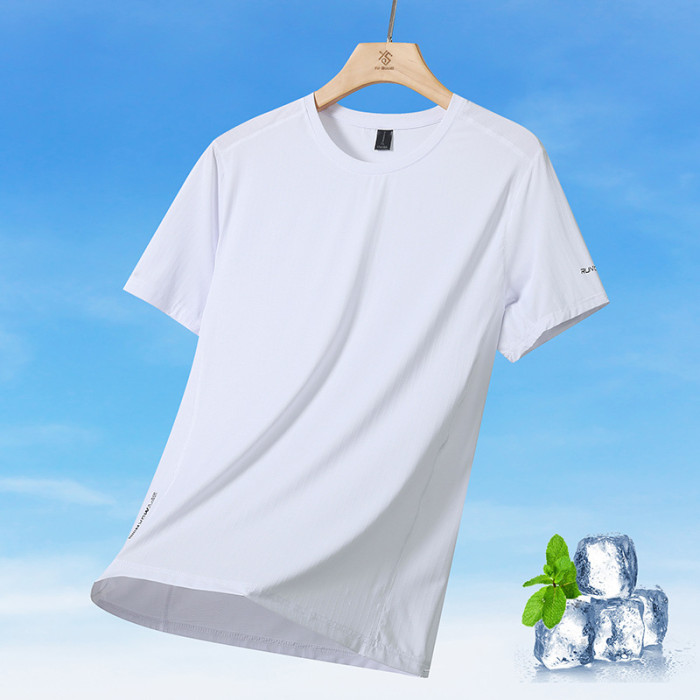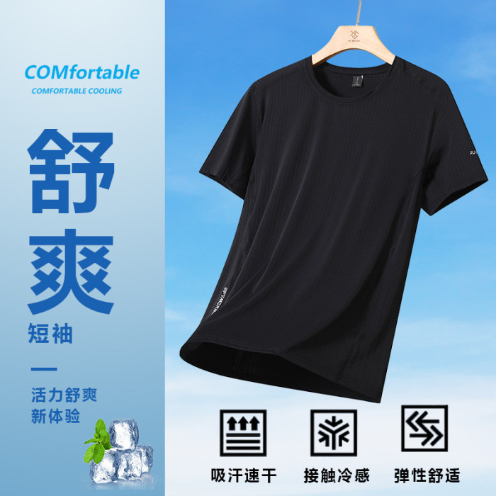 運動跑步短袖男t恤夏季男士薄款冰絲速乾透氣上衣新款大碼男裝