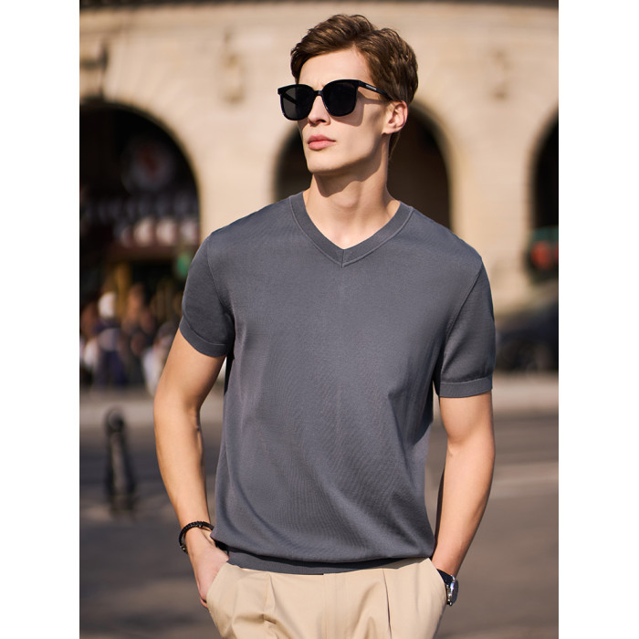 啄木鳥2025新款伊力特男士針織衫短袖男t恤內搭半袖打底衫上衣