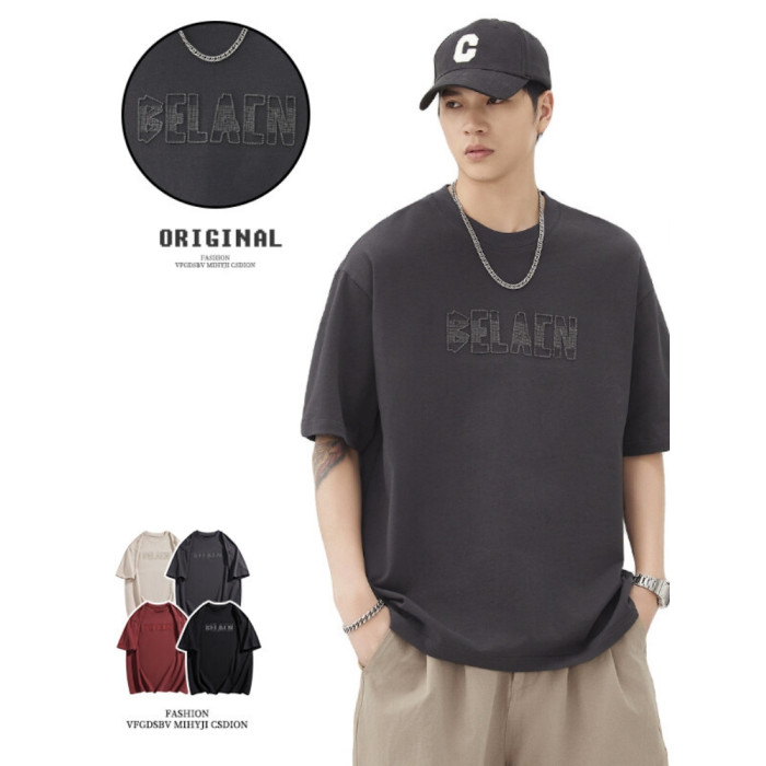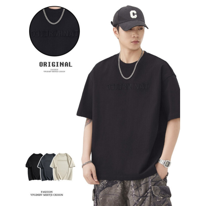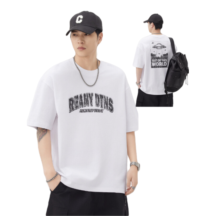重磅全棉短袖t恤男款2025夏季薄款寬松圓領印花美式半袖上衣男T恤