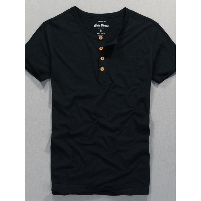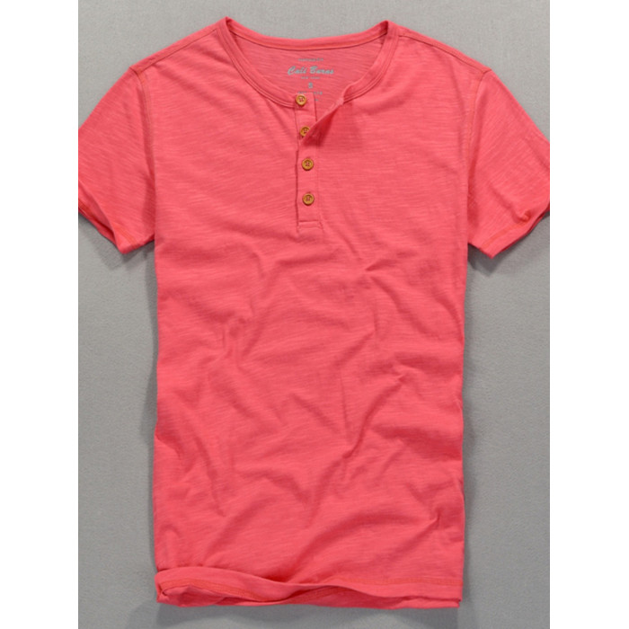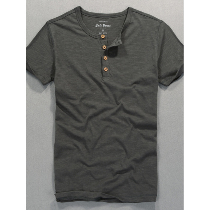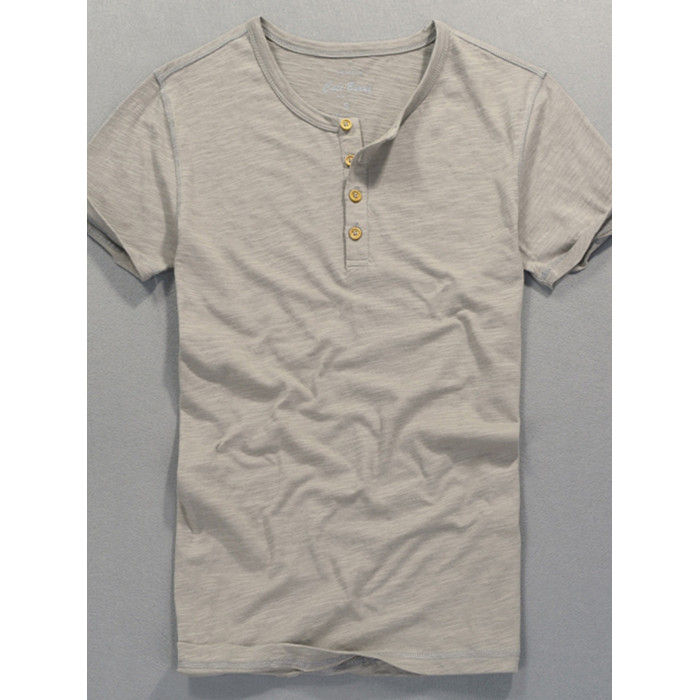香港夏季新款式T恤短袖門筒領薄款透氣棉質男T恤修身純色休閒裝潮