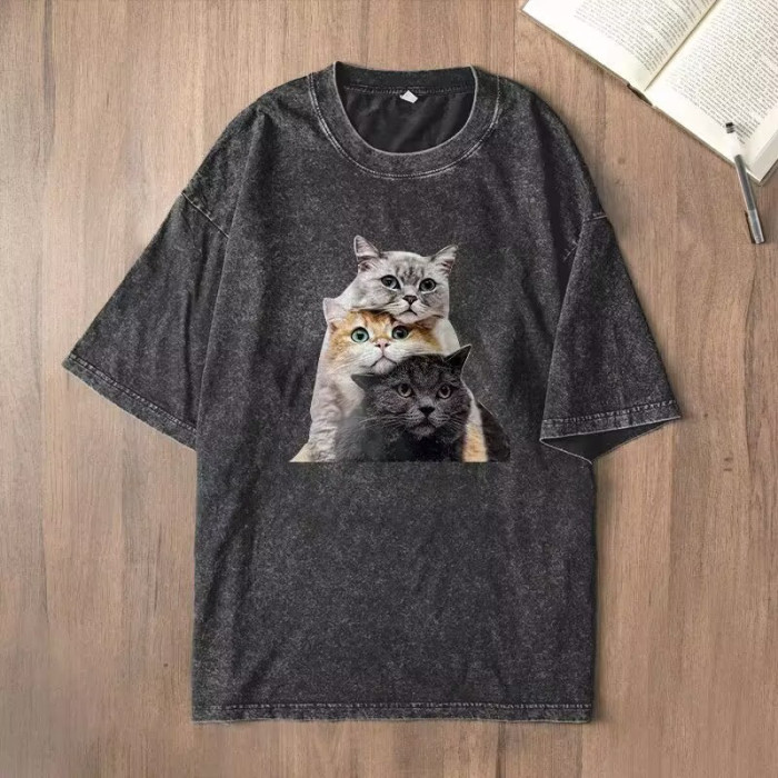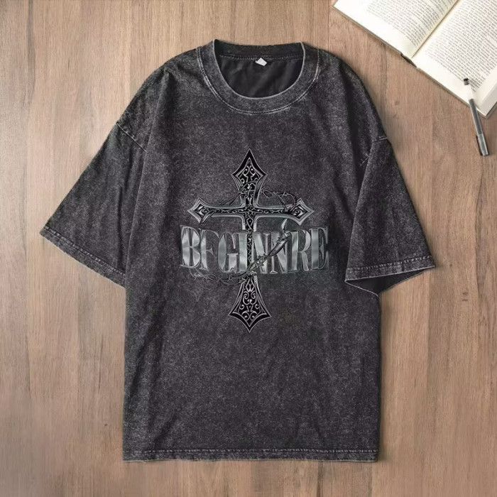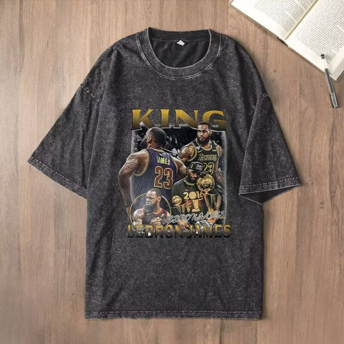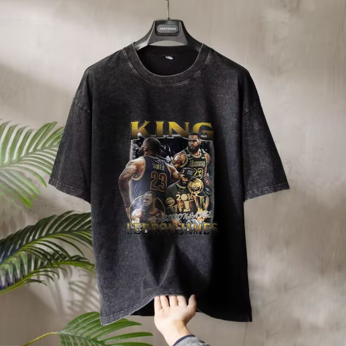 水洗黑色純棉男T恤寬松體恤詹姆斯潮流復古衫籃球星運動百搭上衣