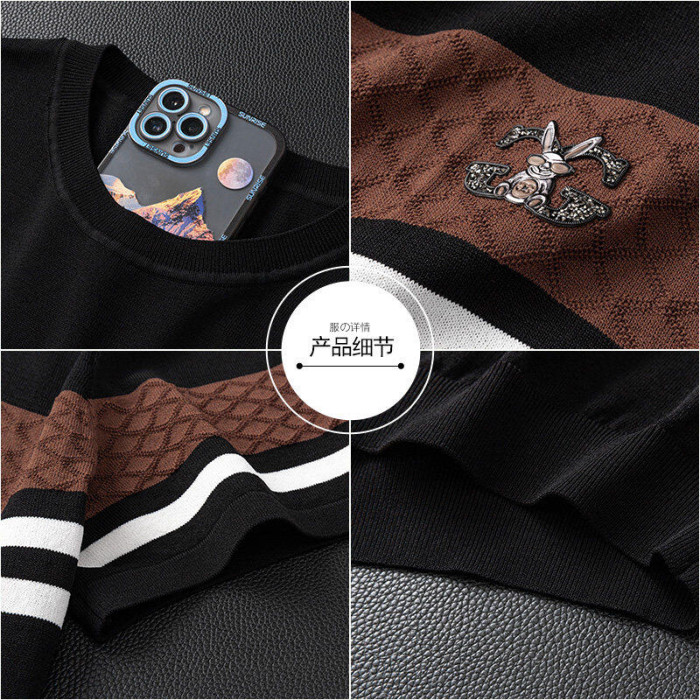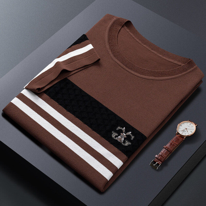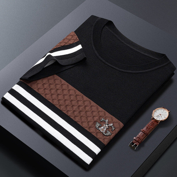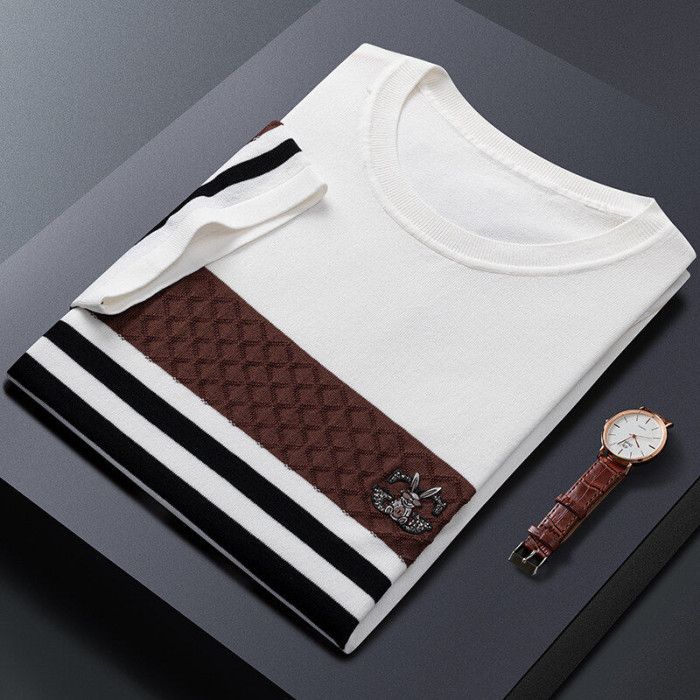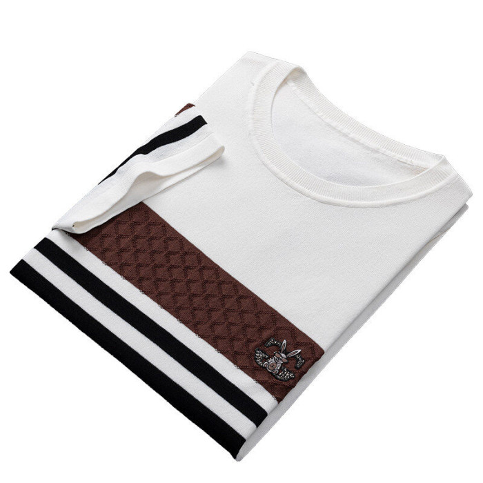 夏季男士新款高品質條紋青少年涼感男款上衣綉花短袖伊力特男T恤