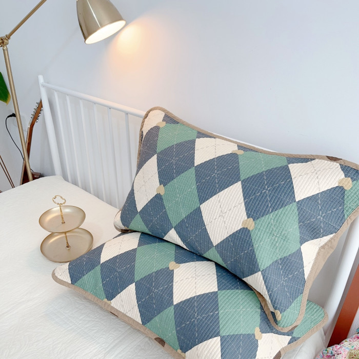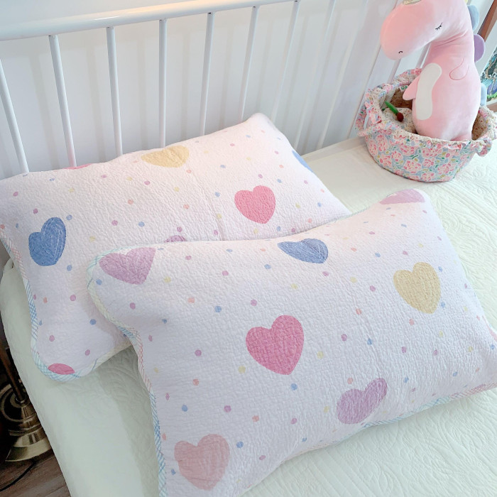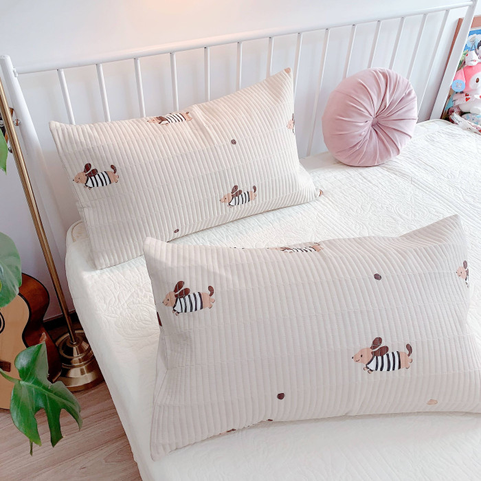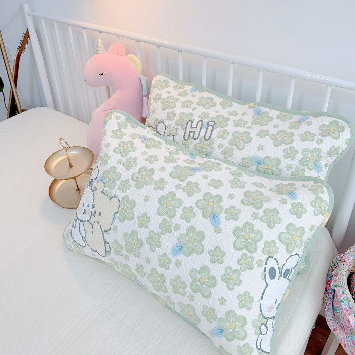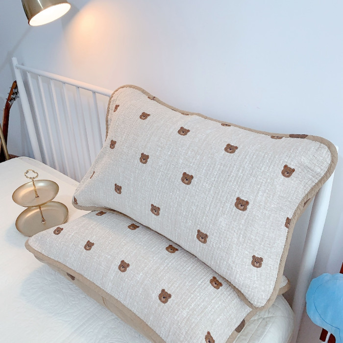 韓國砂洗斜紋純棉夾棉絎縫枕套可愛粉色小熊加厚枕袋學生枕套1對
