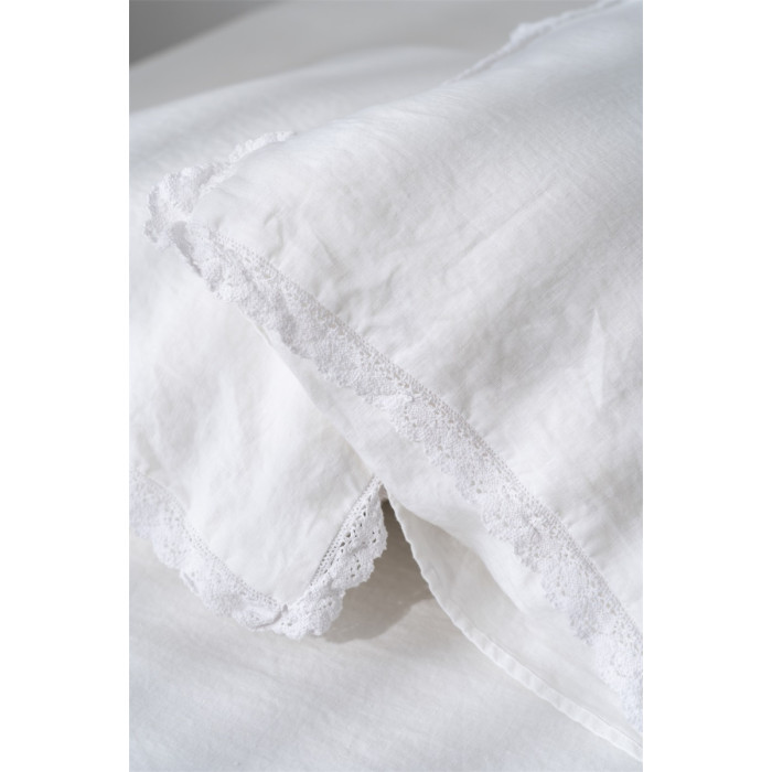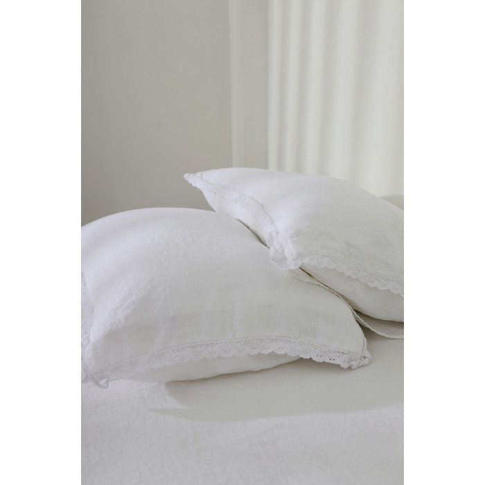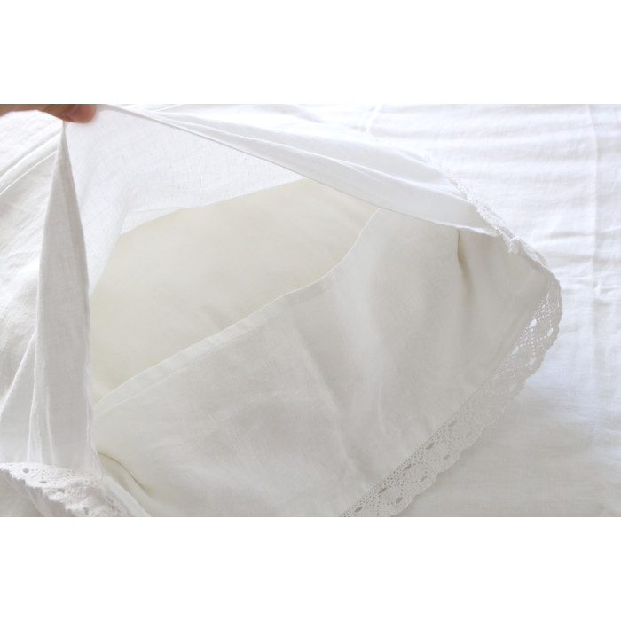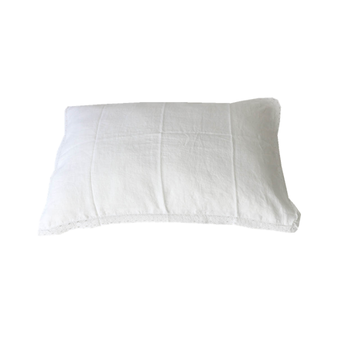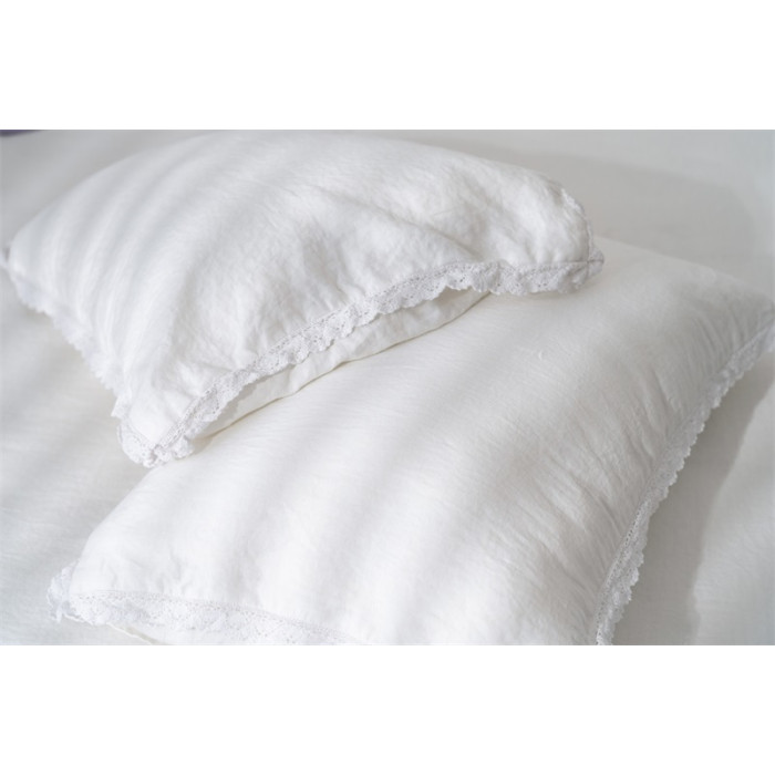 單法國進口原料純亞麻雨露麻單人花邊枕套 透氣 防蟎