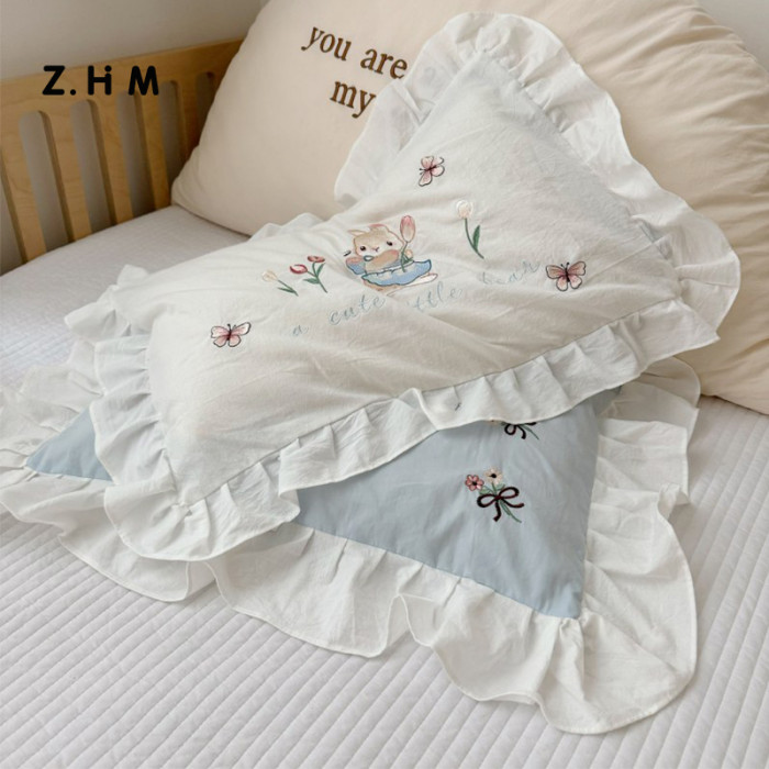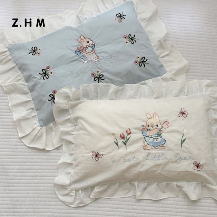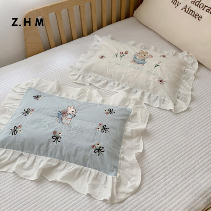 a類公主風兒童枕套30x50純棉全棉嬰兒枕頭套單個法式花邊小整頭套