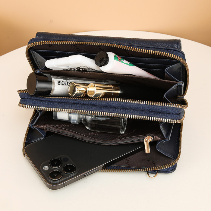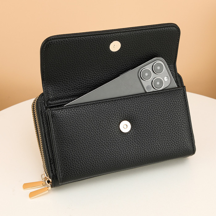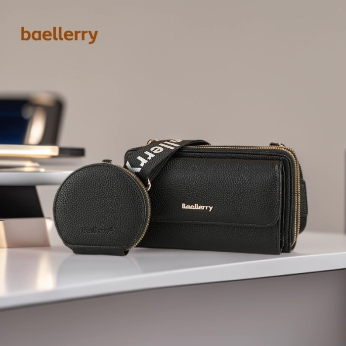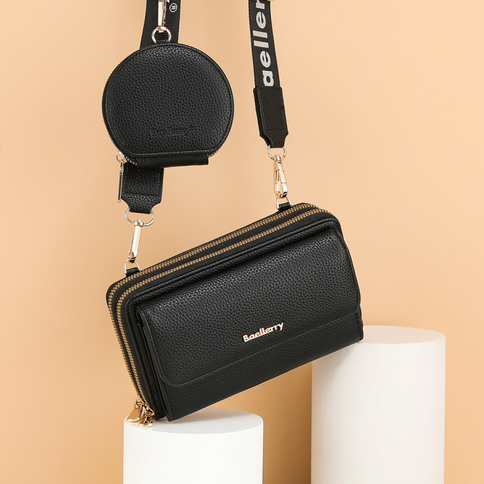 Baellerry新款女士手機包荔枝紋雙拉鍊吸釦單肩高級時尚子母包女