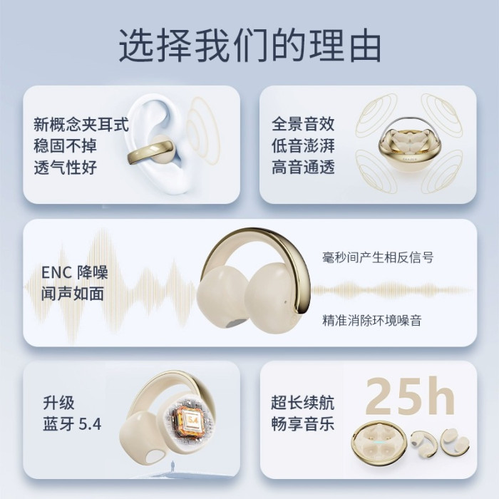 異能者耳機耳夾式無線藍牙5.4ENC降噪長續航小巧可攜式耳機ETX-Z02