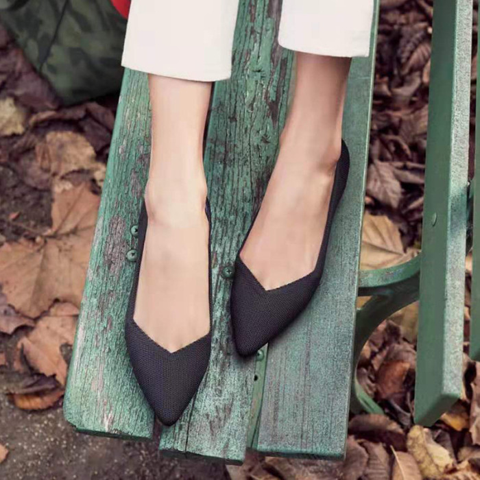 108圖志鞋廠經典王妃鞋尖頭淺口平底單鞋女飛織多色大碼41-43船鞋