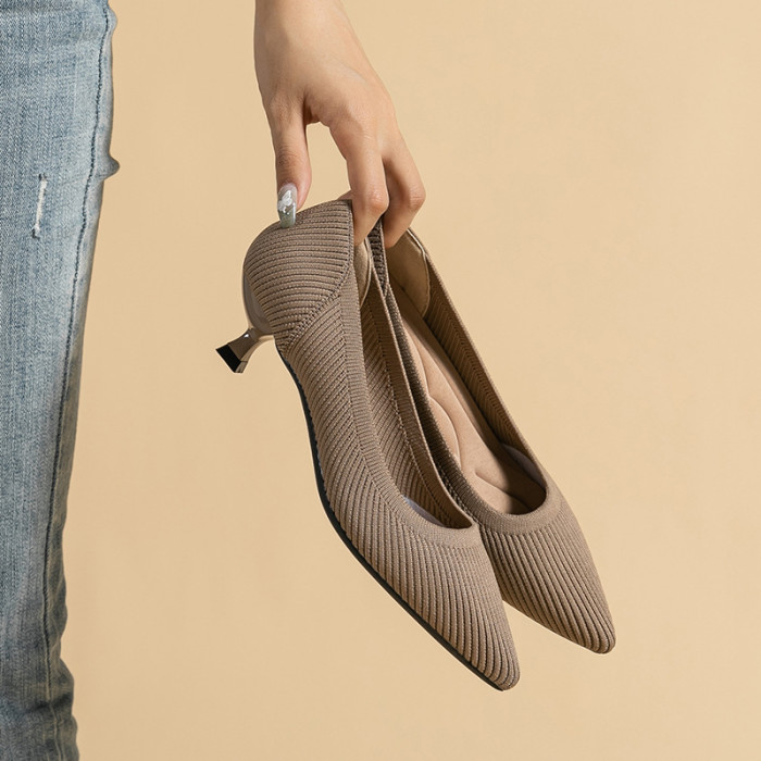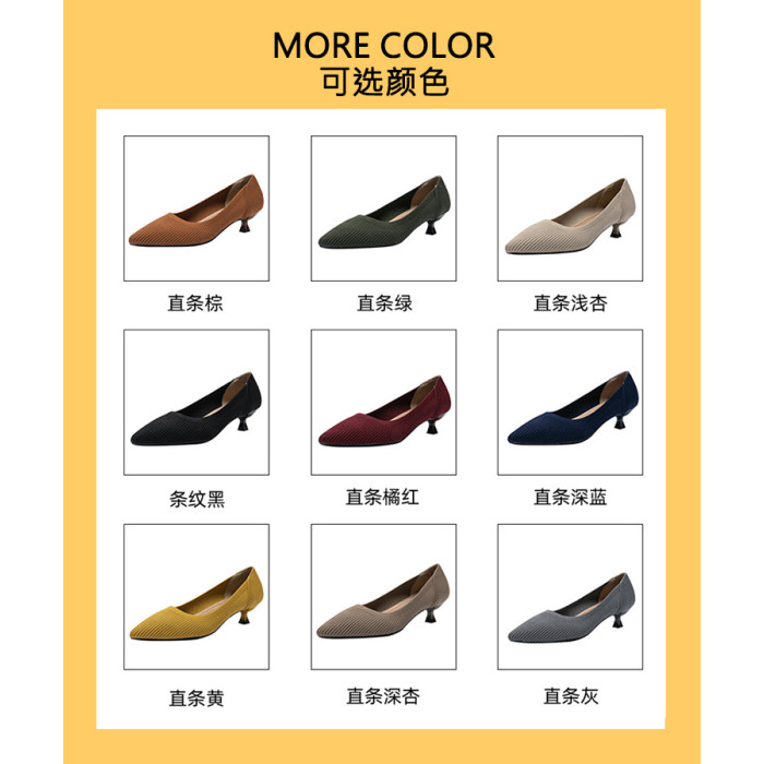 1507女士尖頭淺口小貓跟軟底針織王妃鞋中高跟單鞋子女舒適潮氣質
