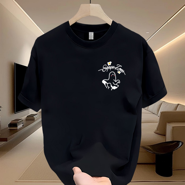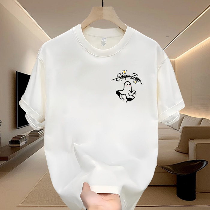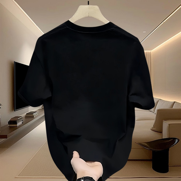 夏季新款圓領短袖男t恤極簡簡約寬松純棉時尚休閒印花百搭短袖T恤