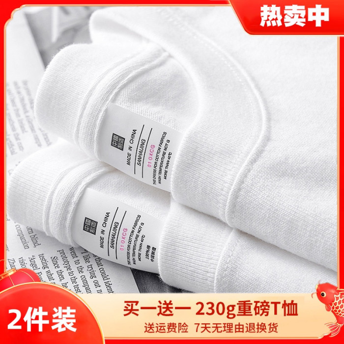 羅尼服裝店兩件套短袖!230g純棉重磅打底衫男T恤初春白色上衣半袖