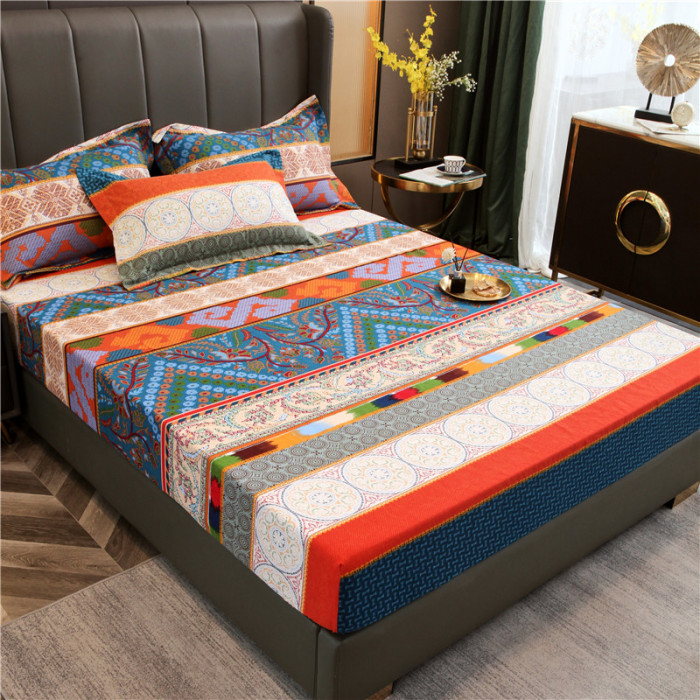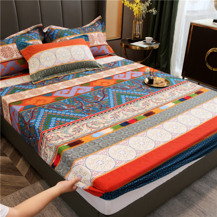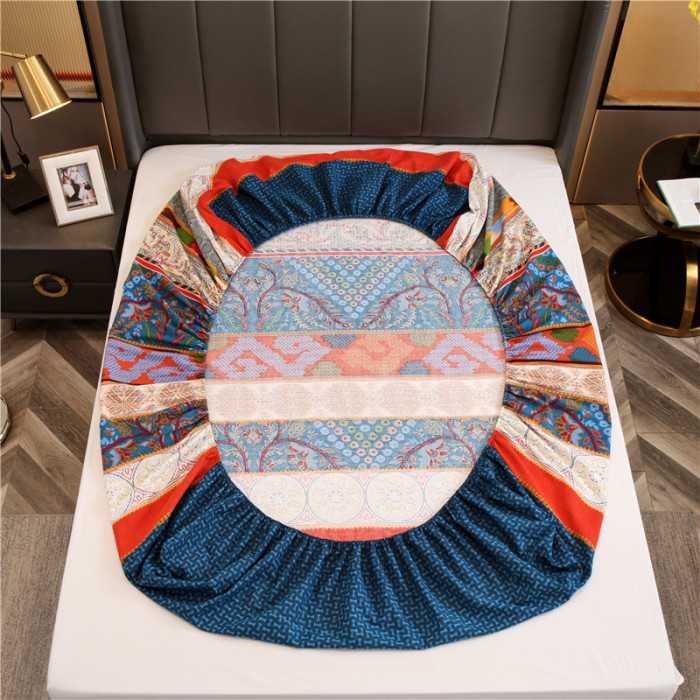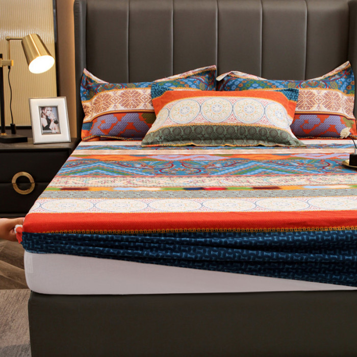 復古民族風純棉床笠單件全棉磨毛蓆夢思床墊套全包防滑床罩四件套