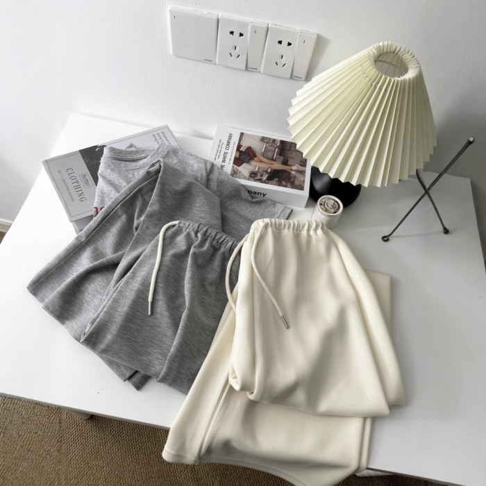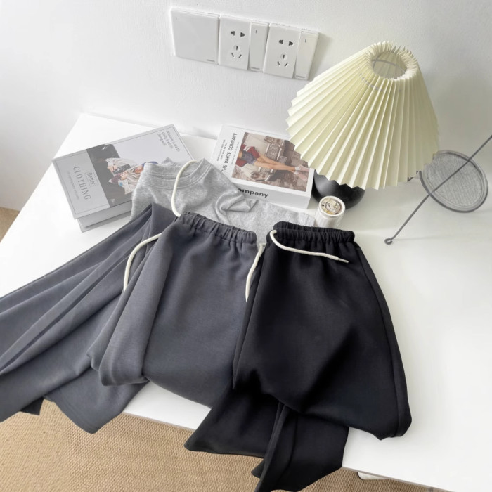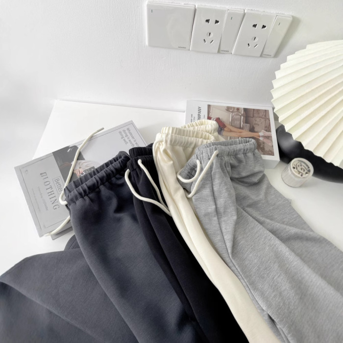 空氣層銅氨絲超爆休閒濶腿褲子女夏韓版顯瘦直筒拖地運動長褲5455