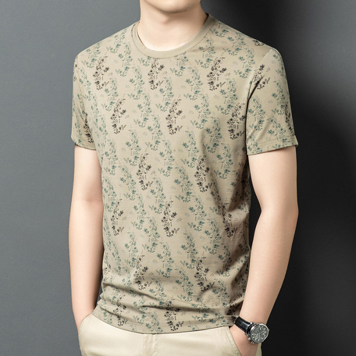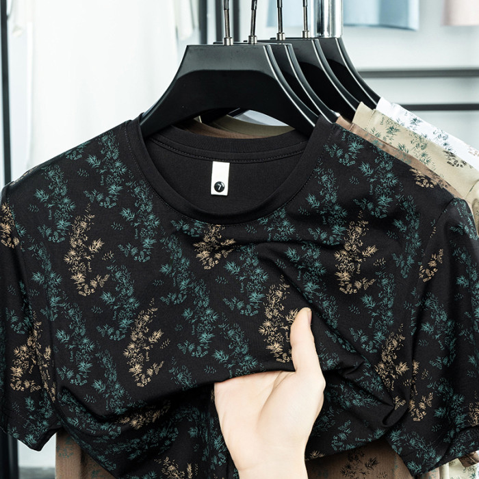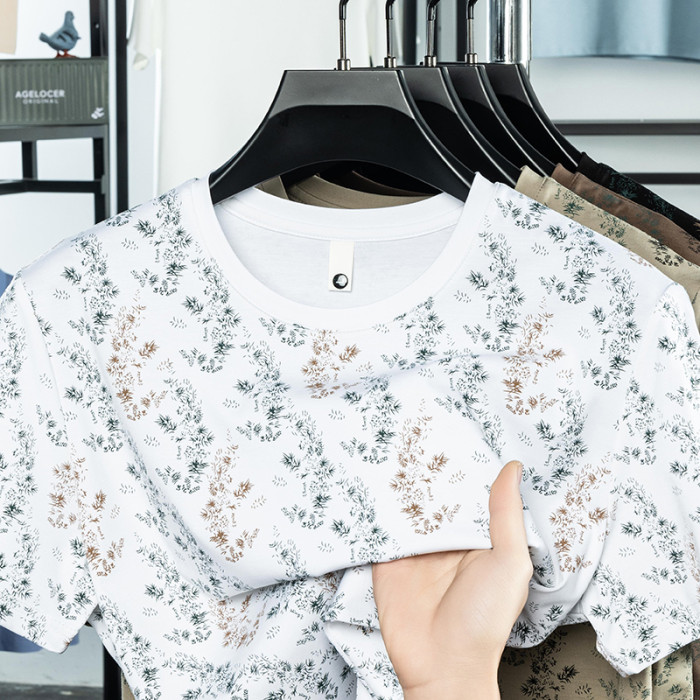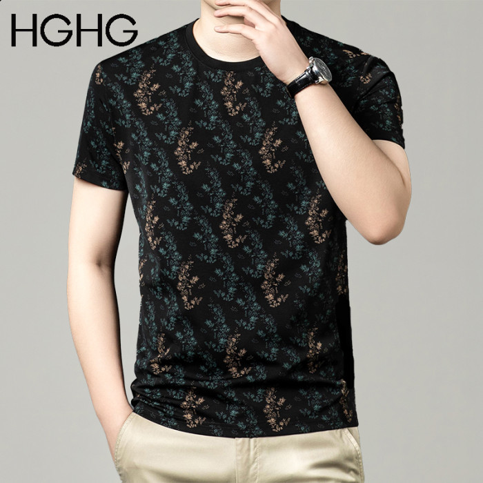 HGHG短袖t恤男2025新款夏季圓領冰感透氣純棉正肩白色冰絲男t恤男