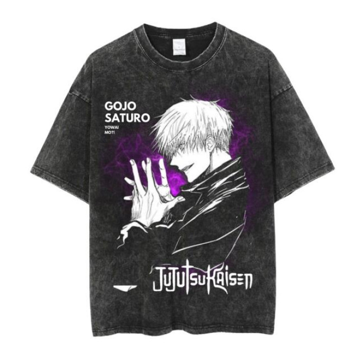Jujutsu Kaisen Gojo Satoru男T恤復古水洗做舊純棉上衣原宿街頭