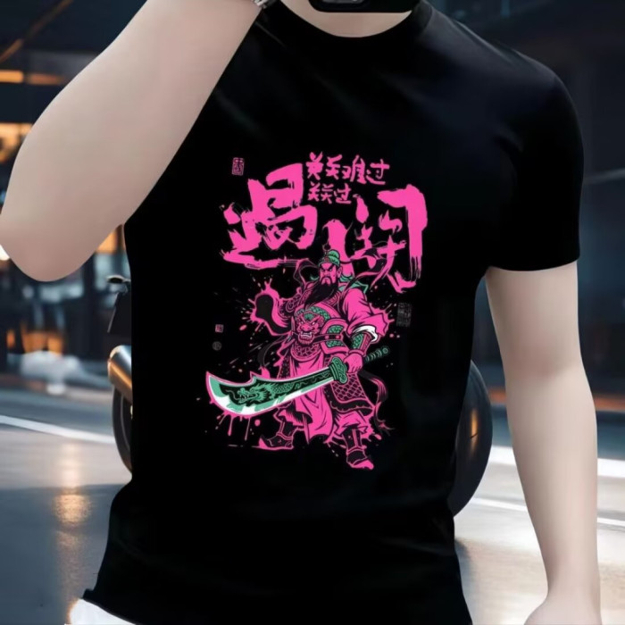 夏季新款國潮關公大刀印花冰絲涼感短袖修身男T恤百搭關二爺上衣