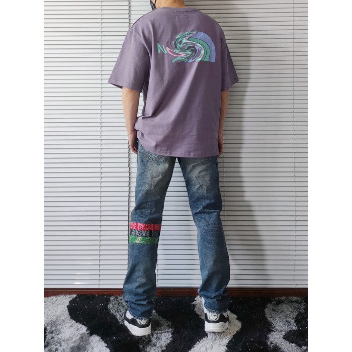 陳冠希同款潮牌聯名重磅彩色字母印花多巴胺穿搭夏純棉短袖男T恤