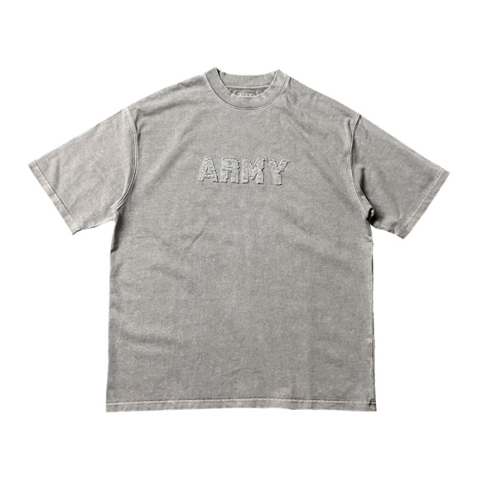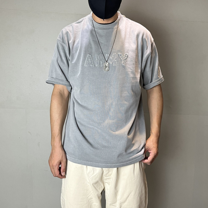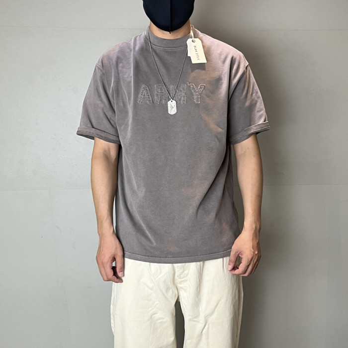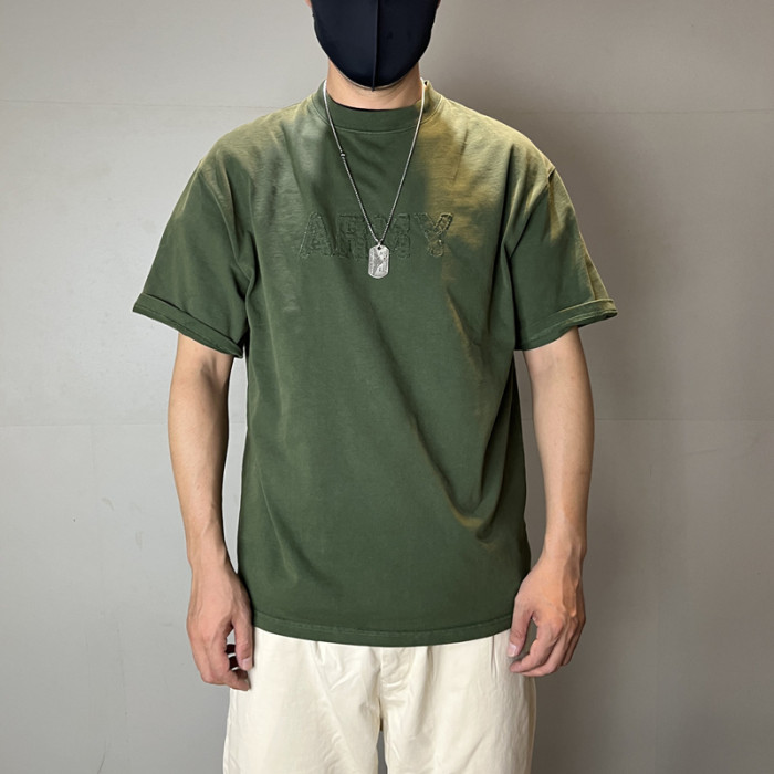 美式復古重磅男T恤斑駁做舊水洗短袖夏季純棉寬松休閒體恤潮厚款
