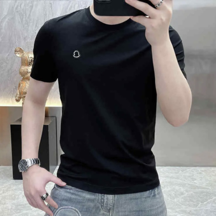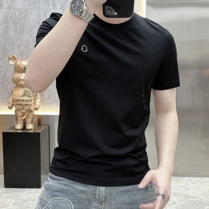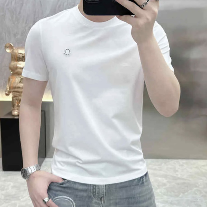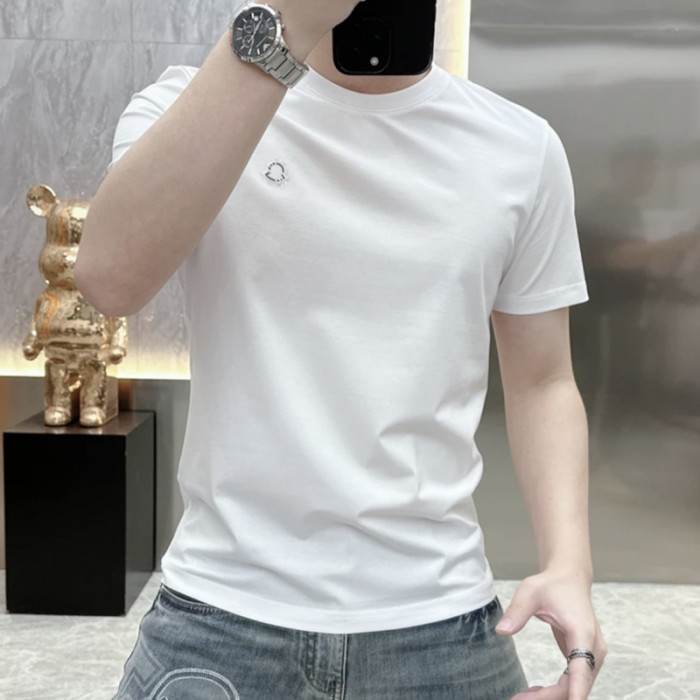 2025夏季新款歐貨簡約純色絲光棉短袖男T恤百搭時尚修身圓領上衣