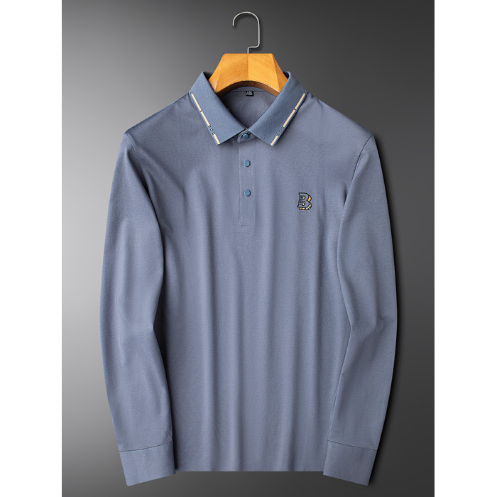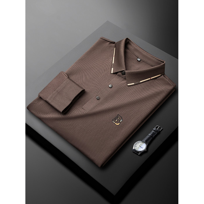 輕奢級咖色翻領Polo衫衛衣長袖男t恤秋季潮牌B刺綉商務休閒上衣