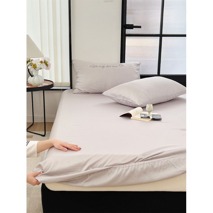 夏季80支蘭精天絲純色床笠三件套 輕奢刺綉絲滑涼感簡約床笠單賣