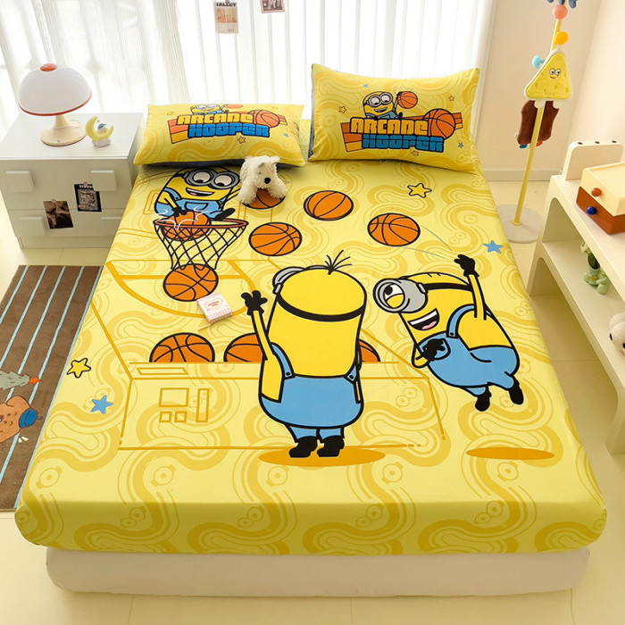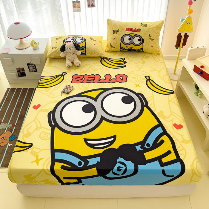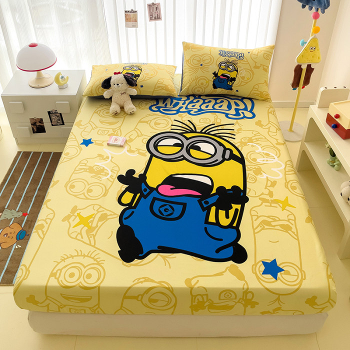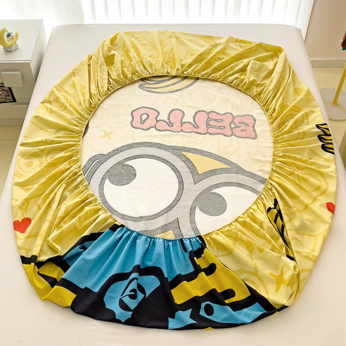 小黃人床笠純棉兒童卡通男孩女孩可愛全棉1.2床墊套蓆夢思1.5床罩