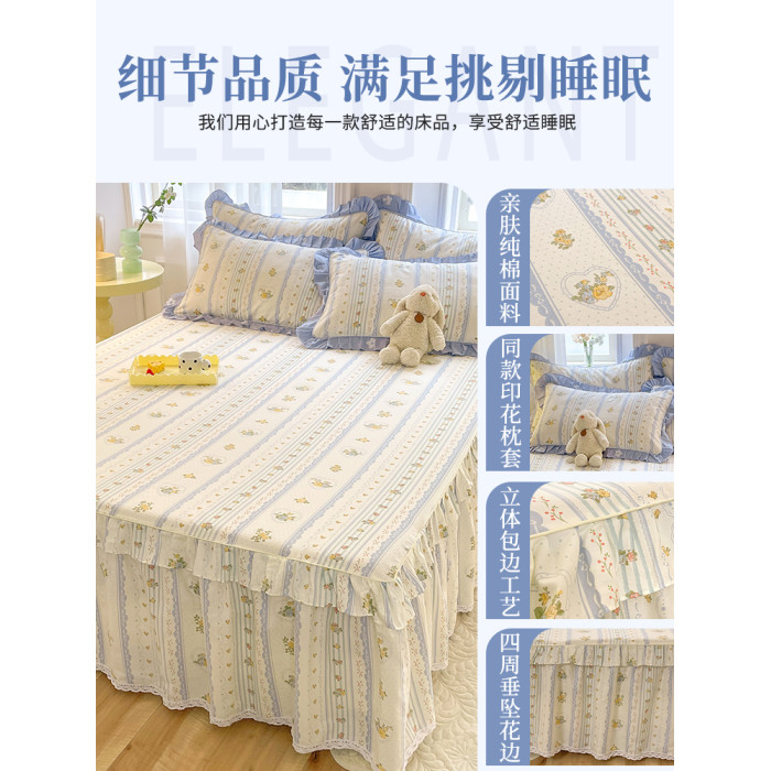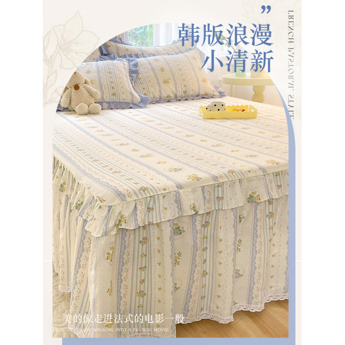 純棉床笠式床罩三件套公主風全棉床裙單件防滑床單套帶裙邊防塵罩