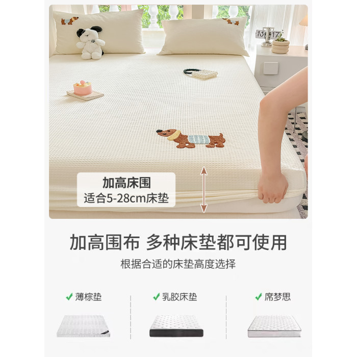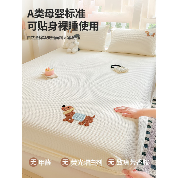 卡通小狗華夫格全棉床笠純棉2025新款四季通用床墊套兒童床罩床套