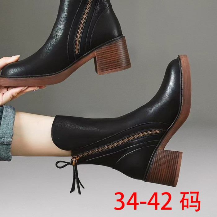 4142碼復古風中筒側拉鍊馬丁靴秋季新款歐版粗跟時尚潮流時裝女靴