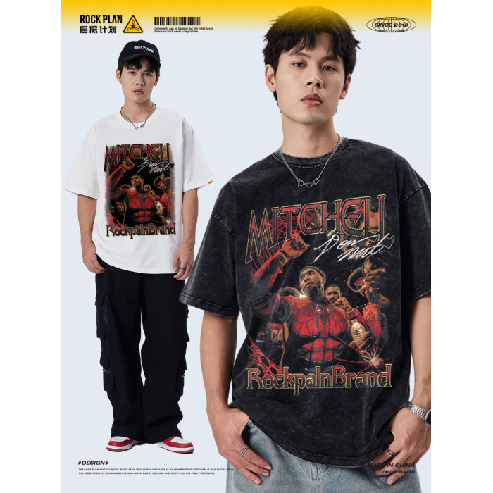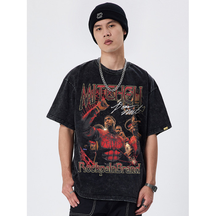 搖滾計劃個性印花籃球騎士隊米切爾蜘蛛人短袖籃球衣學生男T恤潮