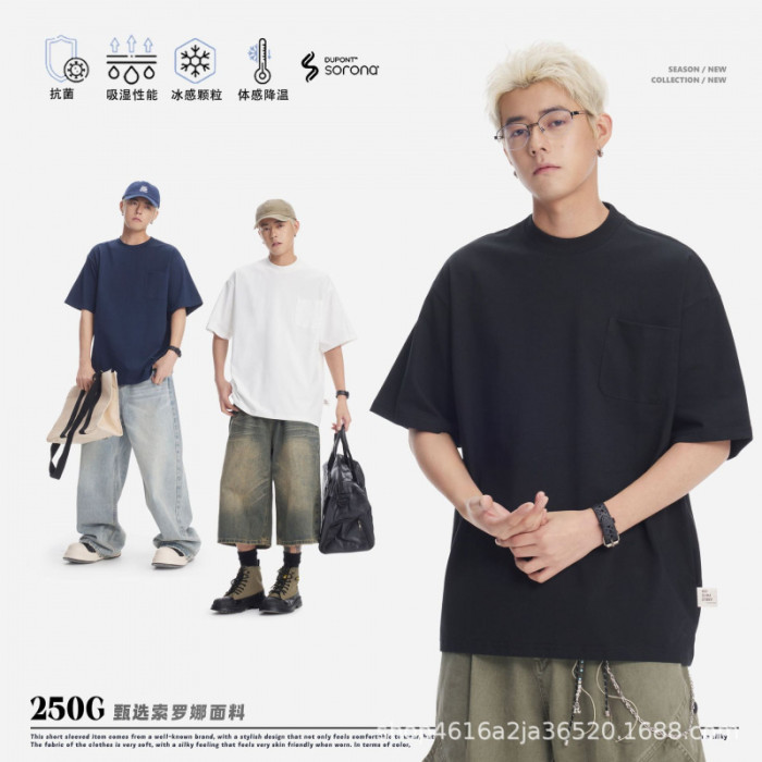 2025年新款CATTEE 索羅娜純色圓領250g重磅短袖男t恤女寬松涼感防