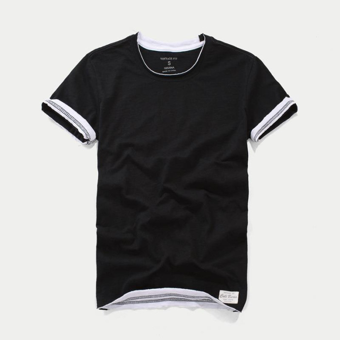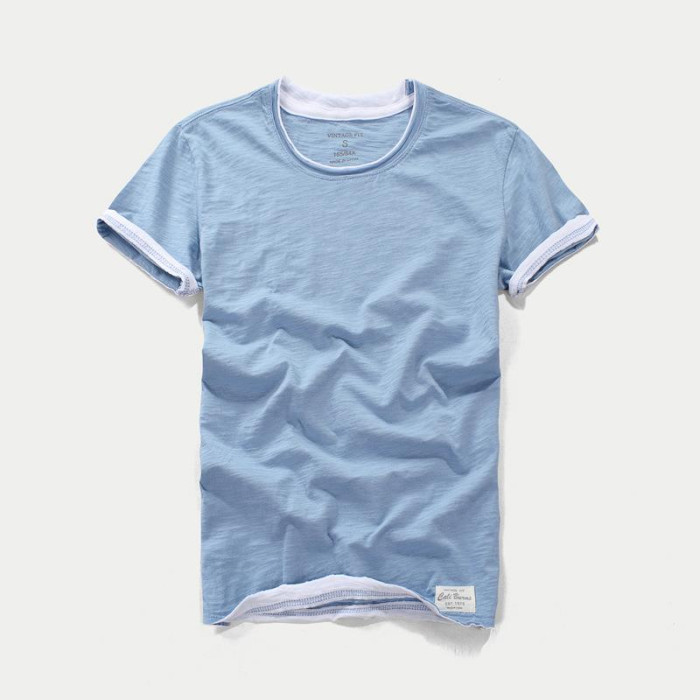 夏季新款短袖薄款男T恤竹節棉圓領男式半恤休閒棉T體恤衫