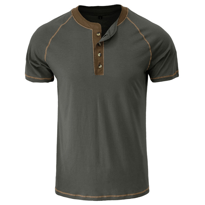 夏季歐美男人男裝短袖男t恤 男士亨利衫拼色體恤男上衣