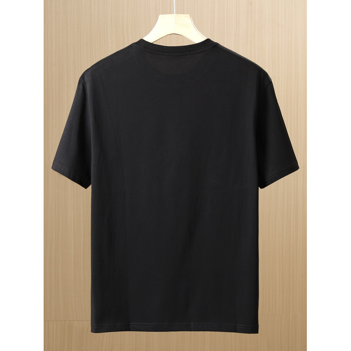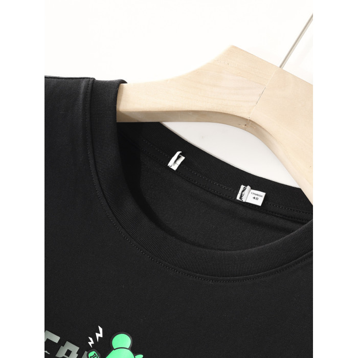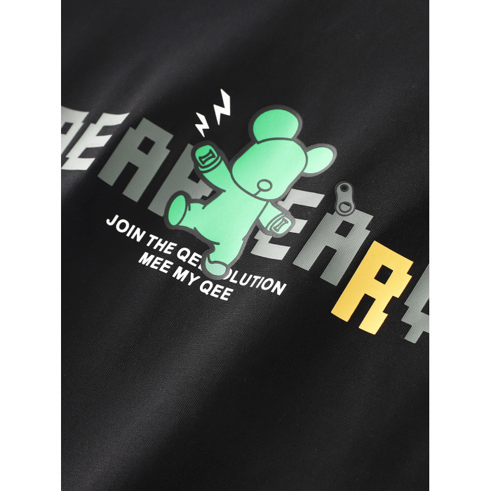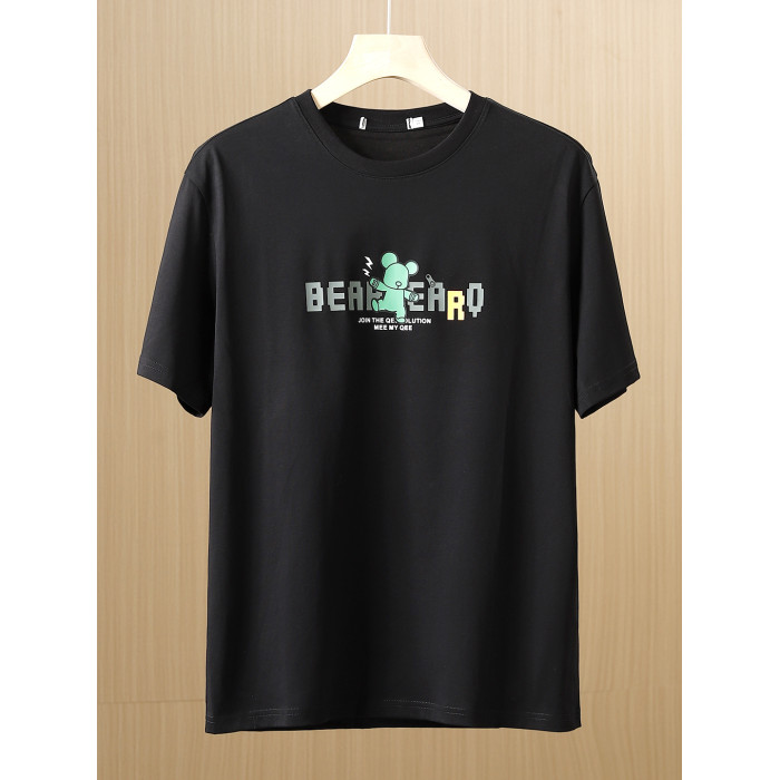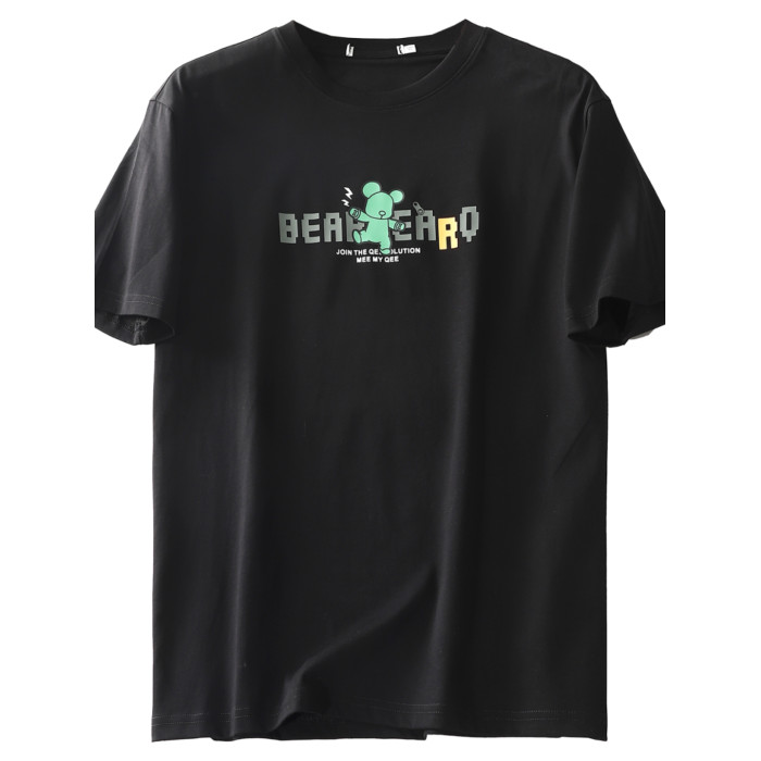 【H家撤櫃】時尚小熊印花透氣冰爽棉黑色男T恤夏季圓領短袖體恤衫