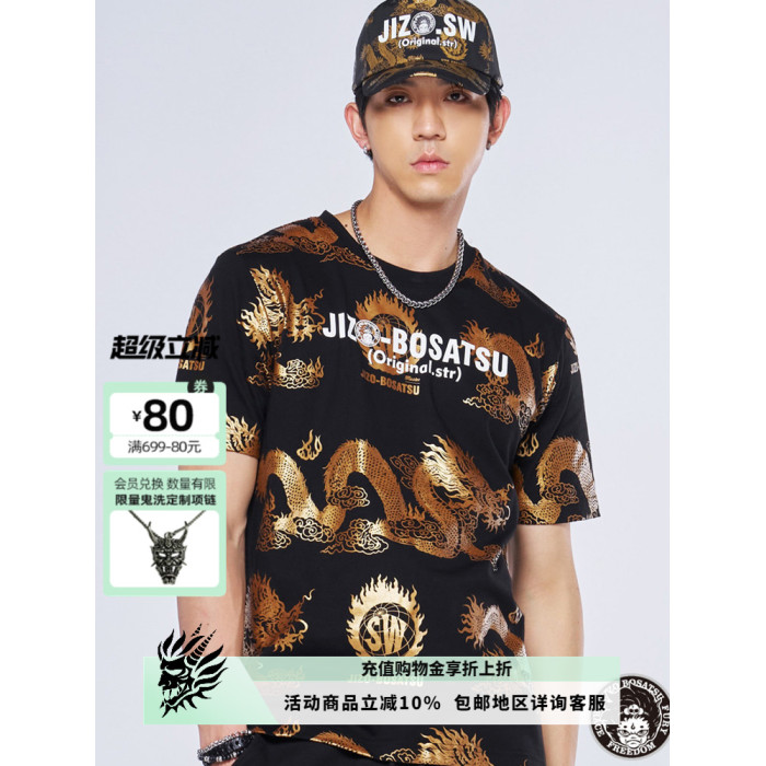 ONIARAI/鬼洗24春夏新品地藏小王五龍(金)滿印短袖男T恤 J850174