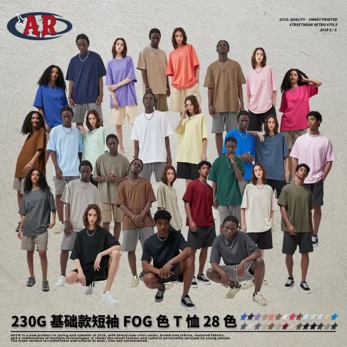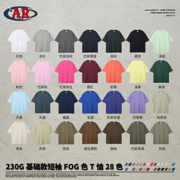 AR大碼男裝歐美潮牌230G雙紗純棉抗菌短袖男t恤純色空白男寬松t恤