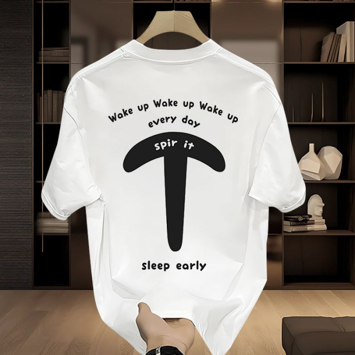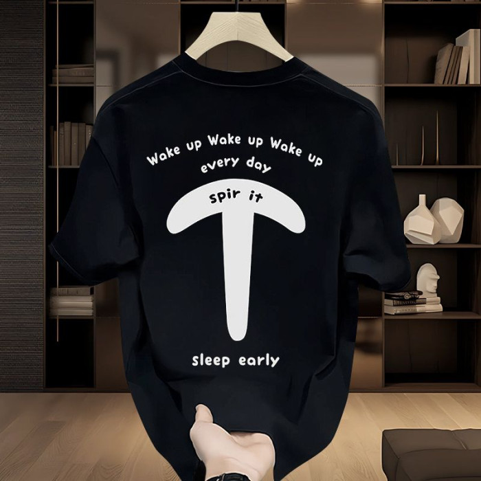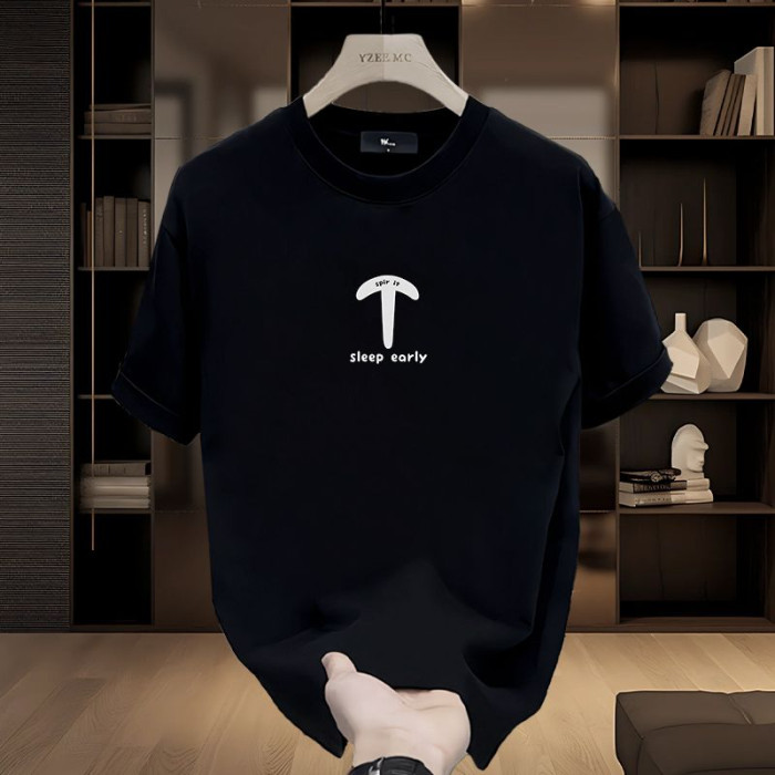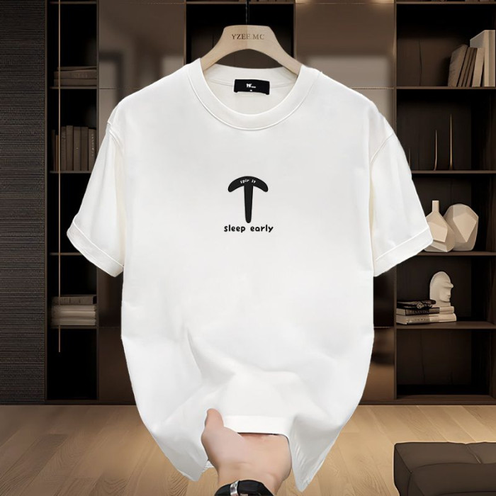100%純棉半袖圓領重磅印花學短袖情侶男T恤夏季寬松青少年簡約生