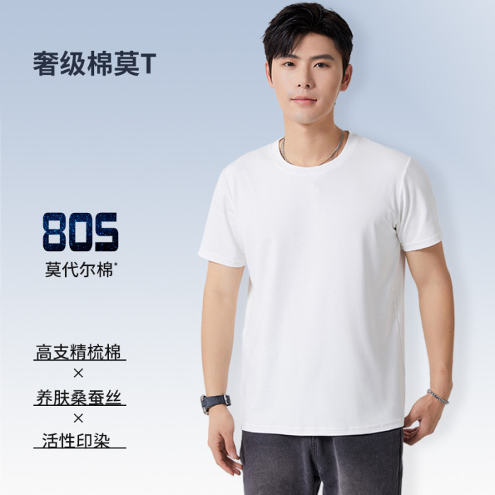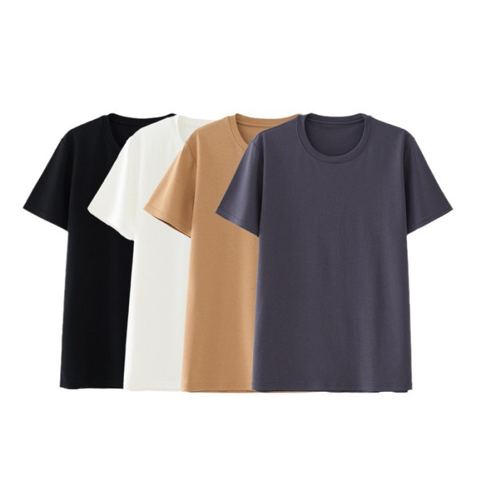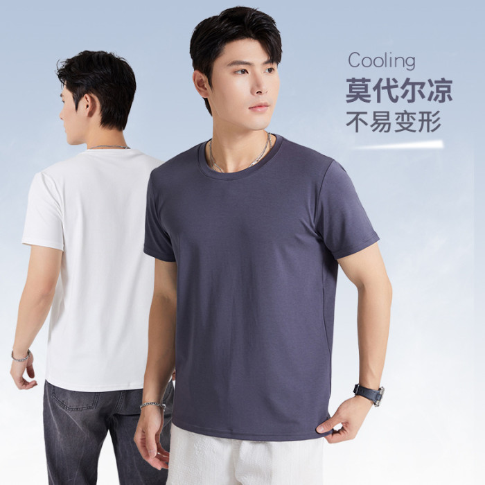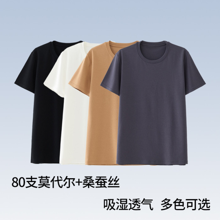 夏季短袖男t恤圓領蠶絲體恤純色半袖運動戶外休閒男裝t恤男T恤