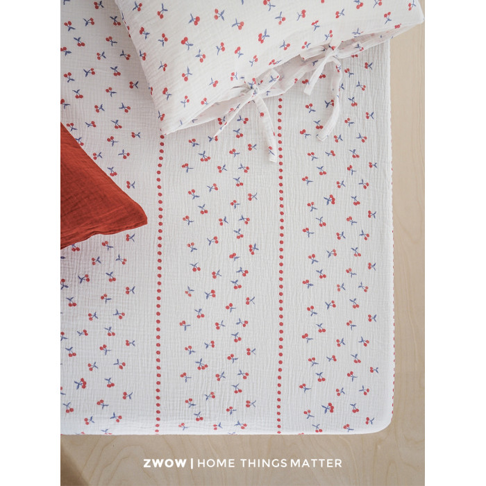造臥zwow夏季雙層皺皺紗印花單床笠單品全棉純棉波點碎花床品拆件