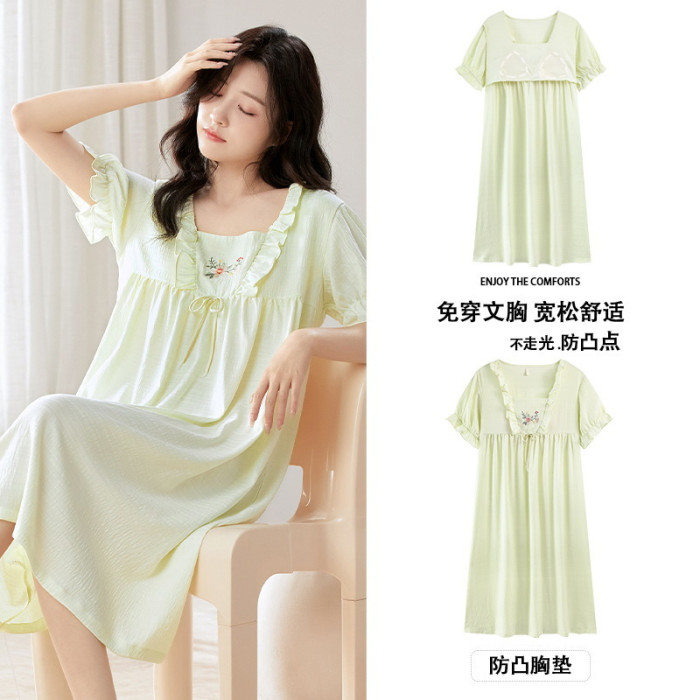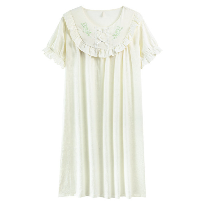 睡裙女夏季短袖公主風睡衣裙子薄款寬松女夏天中長款雲朵棉連衣裙