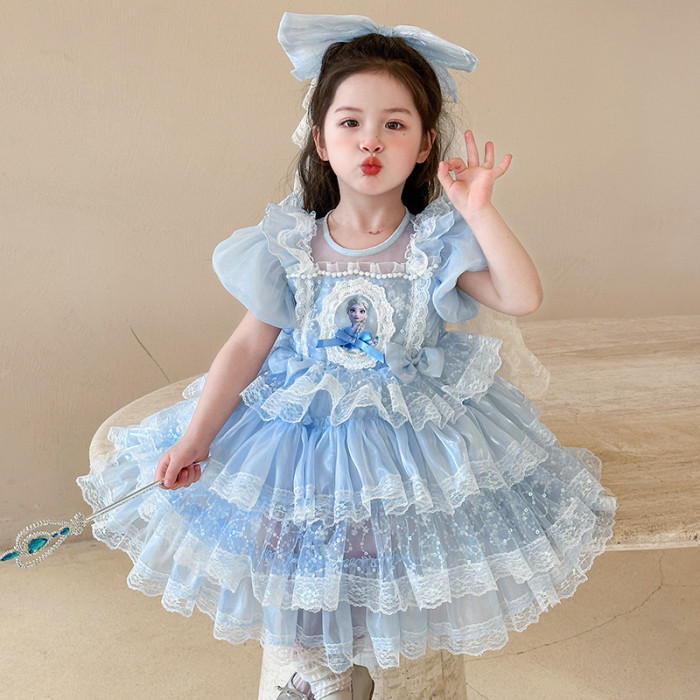 女童愛莎公主裙洛麗塔夏季新款2025兒童連衣裙女孩高級蓬蓬裙