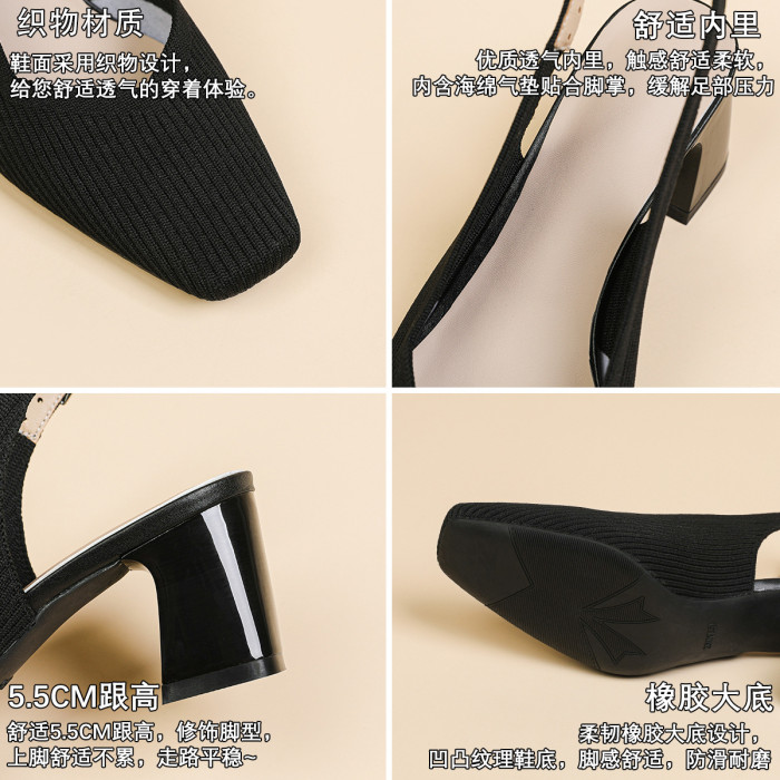 5610春季新款百搭純色透氣方頭淺口粗跟後拌帶包頭高跟後空涼鞋女